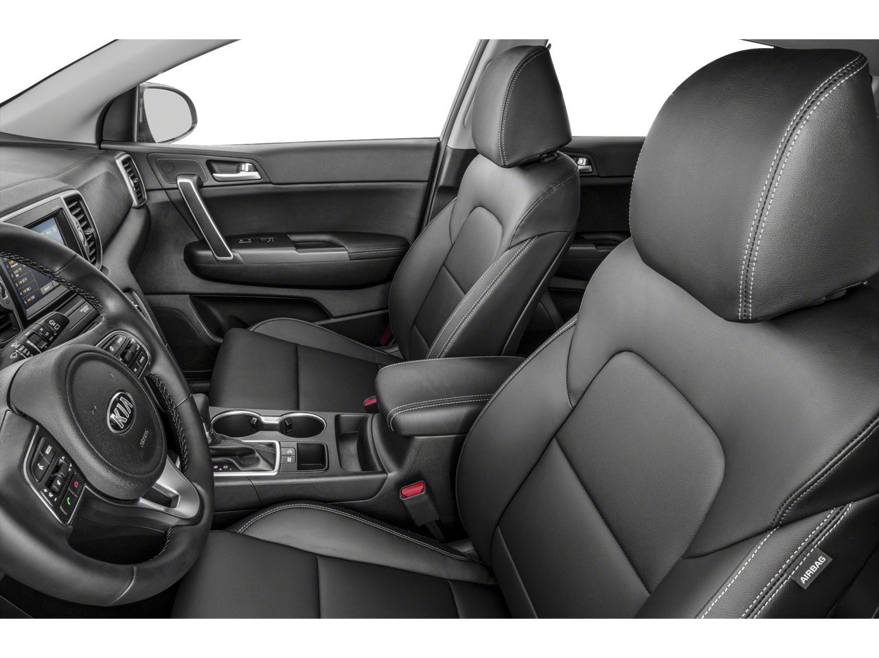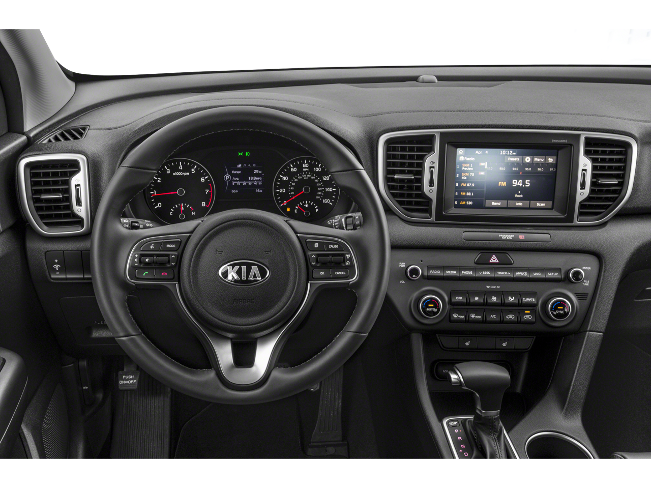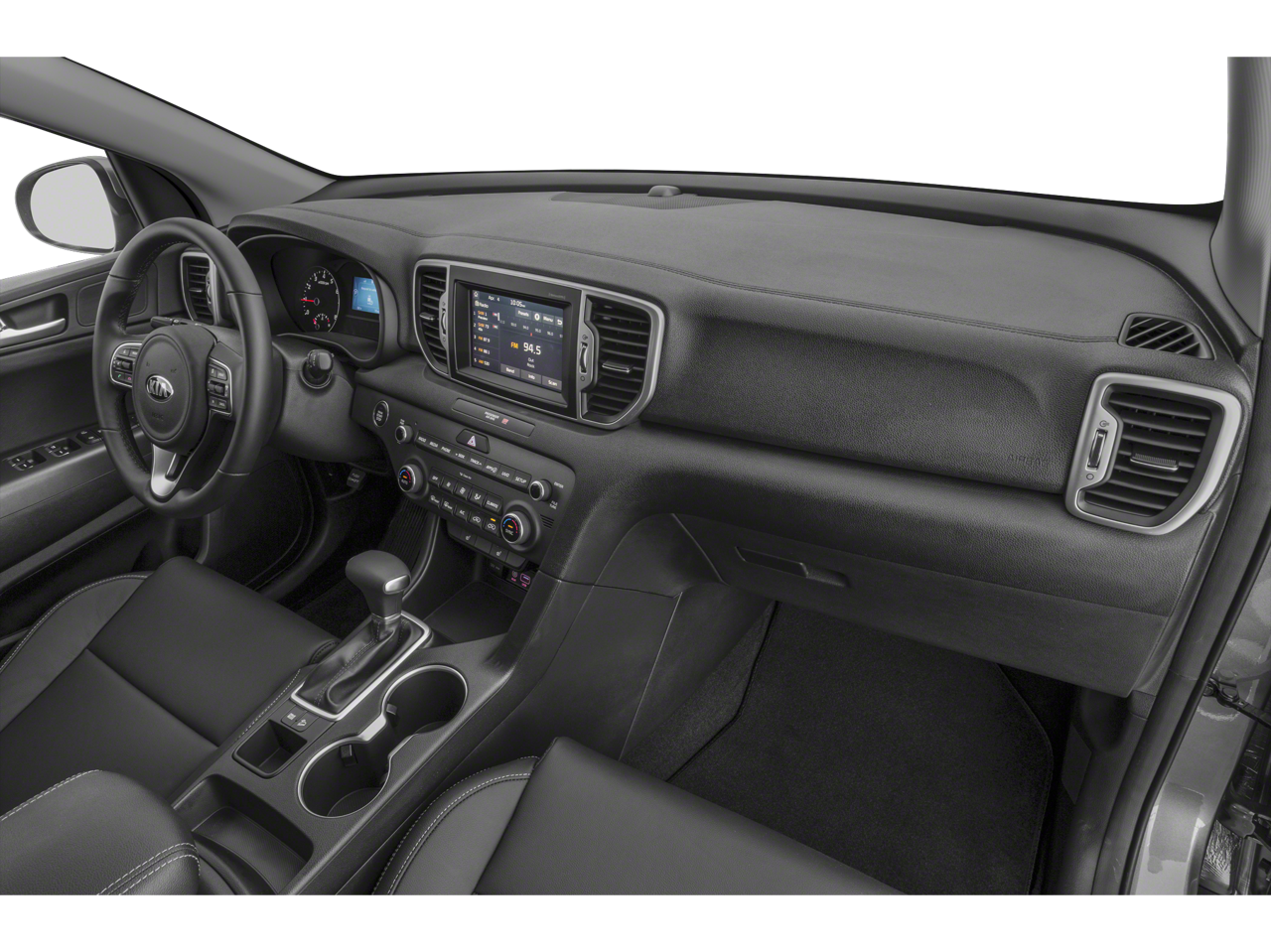 This Sportage EX is nicely equipped with EX Sport Appearance Package (Cool Gray Interior Color Pack, D-Shaped Sport Steering Wheel, Front LED Fog Lamps, LED Taillights, Metal-Look Front & Rear Skid Plates, Satin Window Trim, Stainless Steel Door Entry Plates, Stainless Steel Sport Pedals, Steering Wheel Paddle Shifters, Unique Gloss Black Grille, and Wheels: 18 Black Chrome), 18 Alloy Wheels, 3.06 Axle Ratio, 4-Wheel Disc Brakes, 6 Speakers, ABS brakes, Air Conditioning, Alloy wheels, AM/FM radio: SiriusXM, Apple CarPlay & Android Auto, Automatic temperature control, Brake assist, Bumpers: body-color, Carpet Floor Mats, Delay-off headlights, Driver door bin, Driver vanity mirror, Dual front impact airbags, Dual front side impact airbags, Electronic Stability Control, Emergency communication system: UVO eServices 911 Connect, Exterior Parking Camera Rear, Four wheel independent suspension, Front anti-roll bar, Front Bucket Seats, Front Center Armrest, Front dual zone A/C, Front fog lights, Front reading lights, Fully automatic headlights, Heated door mirrors, Heated Front Bucket Seats, Heated front seats, Illuminated entry, Leather Seat Trim, Leather Shift Knob, Low tire pressure warning, Occupant sensing airbag, Outside temperature display, Overhead airbag, Overhead console, Panic alarm, Passenger door bin, Passenger vanity mirror, Power door mirrors, Power driver seat, Power steering, Power windows, Radio: AM/FM/SiriusXM, Rear anti-roll bar, Rear seat center armrest, Rear window defroster, Rear window wiper, Remote keyless entry, Roof rack: rails only, Security system, Speed control, Speed-sensing steering, Split folding rear seat, Spoiler, Steering wheel mounted audio controls, Tachometer, Telescoping steering wheel, Tilt steering wheel, Traction control, Trip computer, Turn signal indicator mirrors, and Variably intermittent wipers.