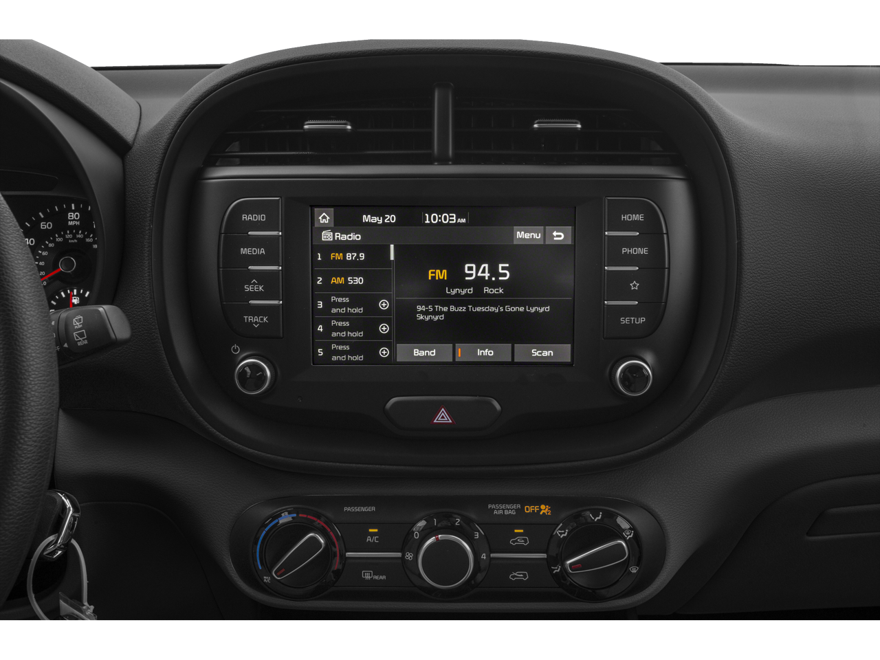 This Soul S is nicely equipped with 4-Wheel Disc Brakes, 6 Speakers, 6-Way Adjustable Driver's Seat, ABS brakes, Air Conditioning, Alloy wheels, AM/FM radio, Apple CarPlay & Android Auto, Brake assist, Bumpers: body-color, Carpeted Floor Mats, Delay-off headlights, Driver door bin, Driver vanity mirror, Dual front impact airbags, Dual front side impact airbags, Electronic Stability Control, Exterior Parking Camera Rear, Front anti-roll bar, Front Bucket Seats, Front Center Armrest, Front reading lights, Front wheel independent suspension, Fully automatic headlights, Low tire pressure warning, Occupant sensing airbag, Outside temperature display, Overhead airbag, Overhead console, Passenger door bin, Passenger vanity mirror, Power door mirrors, Power steering, Power windows, Radio: AM/FM/MP3 Audio System, Rear window defroster, Rear window wiper, Remote keyless entry, Speed control, Speed-sensing steering, Split folding rear seat, Steering wheel mounted audio controls, Tachometer, Telescoping steering wheel, Tilt steering wheel, Traction control, Trip computer, Variably intermittent wipers, Wheels: 16 x 6.5 Alloy, and Woven Cloth Seat Trim.