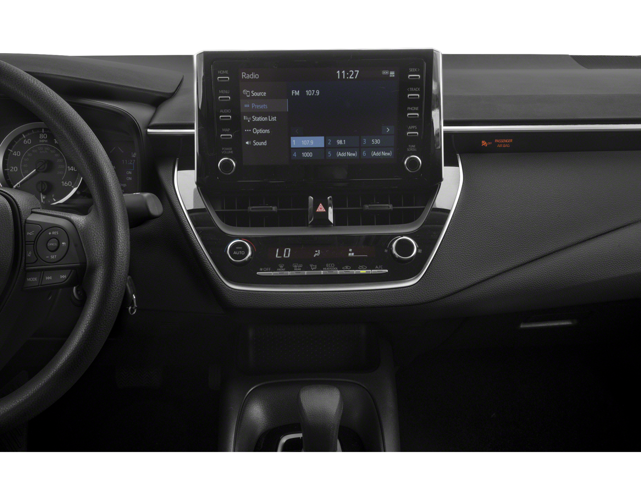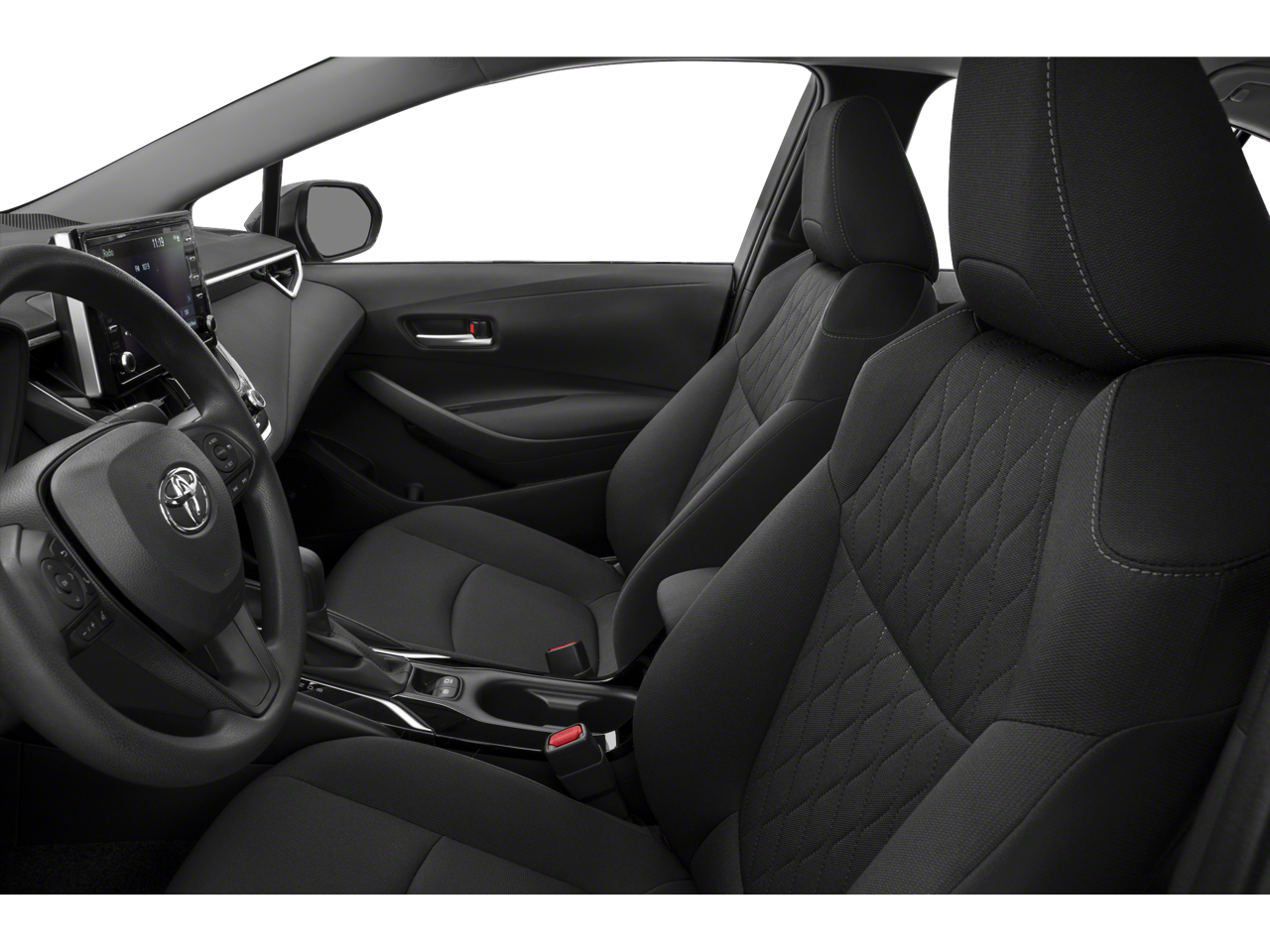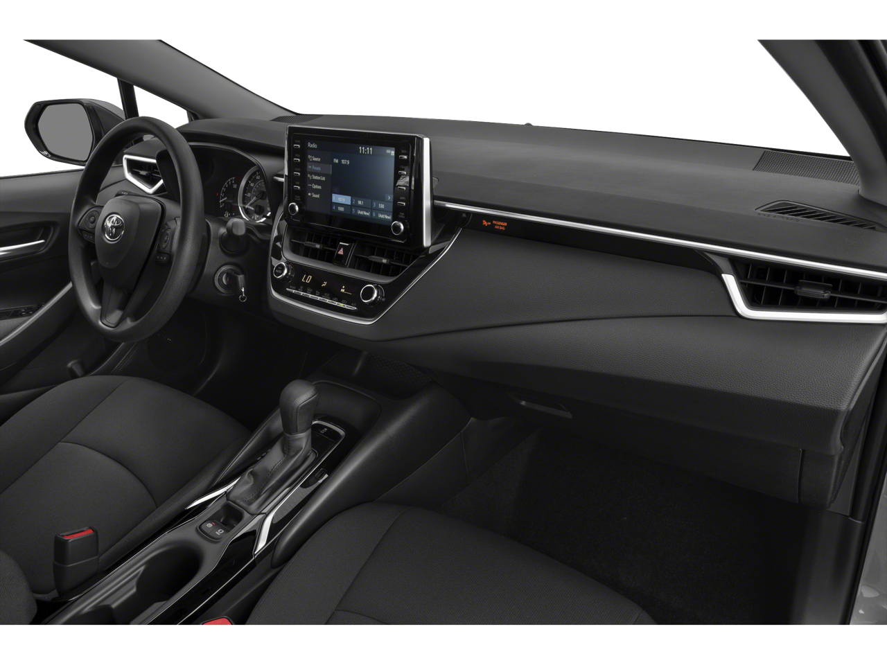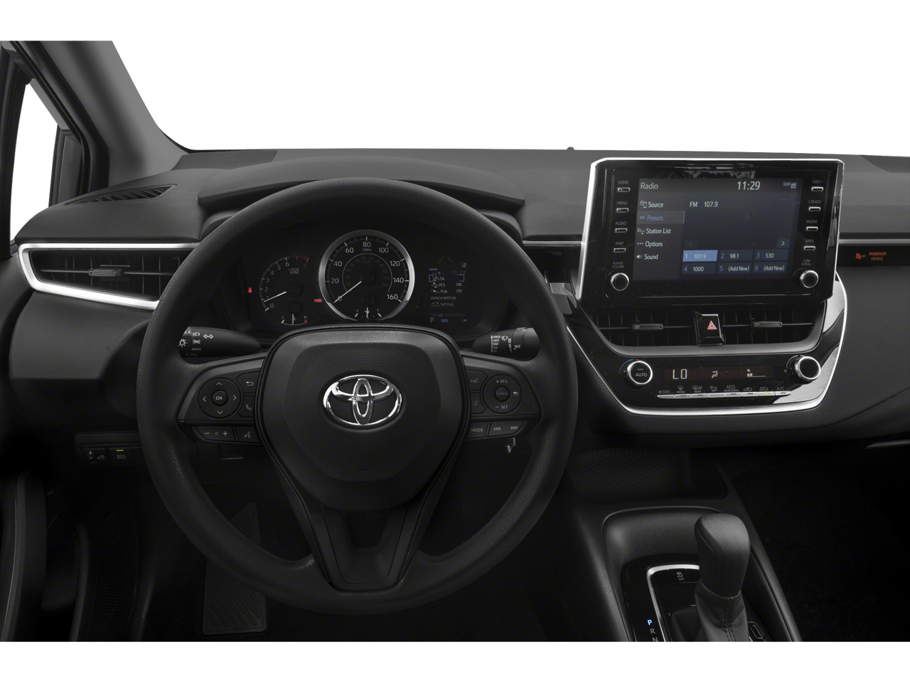 This Corolla LE is nicely equipped with 4-Wheel Disc Brakes, 6 Speakers, ABS brakes, Air Conditioning, AM/FM radio: SiriusXM, Apple CarPlay, Auto High-beam Headlights, Automatic temperature control, Brake assist, Bumpers: body-color, Delay-off headlights, Driver door bin, Driver vanity mirror, Dual front impact airbags, Dual front side impact airbags, Electronic Stability Control, Emergency communication system: Safety Connect with 3-year trial, Exterior Parking Camera Rear, Four wheel independent suspension, Front anti-roll bar, Front Bucket Seats, Front Center Armrest, Front reading lights, Fully automatic headlights, Illuminated entry, Knee airbag, Low tire pressure warning, Occupant sensing airbag, Outside temperature display, Overhead airbag, Panic alarm, Passenger door bin, Passenger vanity mirror, Power door mirrors, Power steering, Power windows, Premium Fabric Seat Trim, Radio data system, Radio: Audio AM/FM w/Navigation, Rear anti-roll bar, Rear seat center armrest, Rear window defroster, Remote keyless entry, Security system, Speed control, Split folding rear seat, Steering wheel mounted audio controls, Tachometer, Telescoping steering wheel, Tilt steering wheel, Traction control, Trip computer, Variably intermittent wipers, and Wheels: 16 Wide Vent Steel.