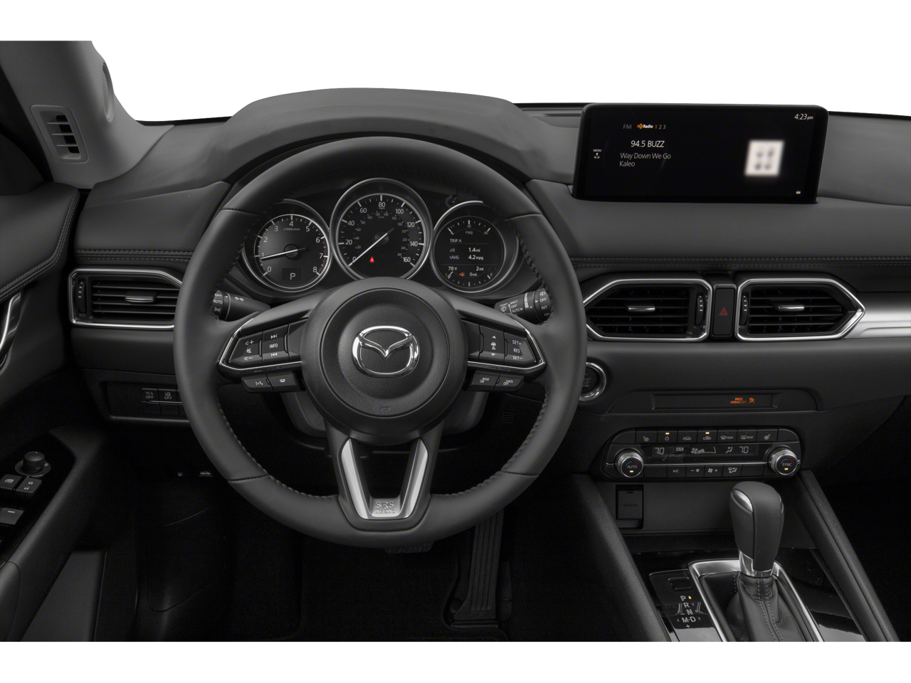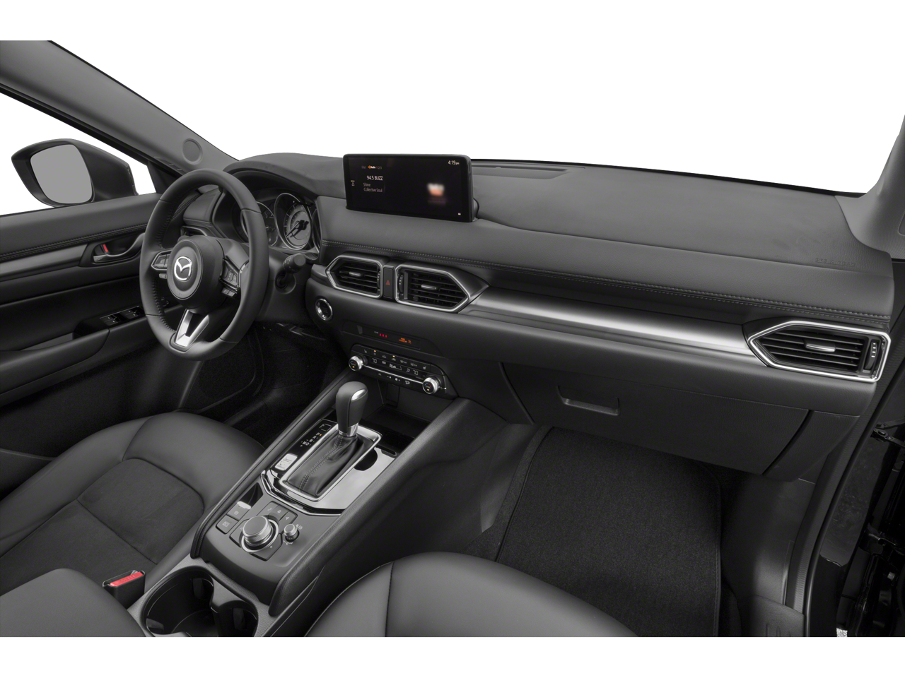 This CX-5 Touring is nicely equipped with 4-Wheel Disc Brakes, 4.325 Axle Ratio, 6 Speakers, ABS brakes, Air Conditioning, Alloy wheels, AM/FM radio, AppLink/Apple CarPlay and Android Auto, Auto High-beam Headlights, Automatic temperature control, Bose 10-Speaker Premium Audio Sound System, Brake assist, Bumpers: body-color, Delay-off headlights, Driver door bin, Driver vanity mirror, Dual front impact airbags, Dual front side impact airbags, Electronic Stability Control, Emergency communication system: MAZDA CONNECT, Exterior Parking Camera Rear, Four wheel independent suspension, Front anti-roll bar, Front Bucket Seats, Front Center Armrest, Front dual zone A/C, Front reading lights, Fully automatic headlights, Heated Front Bucket Seats, Heated front seats, Illuminated entry, Leather Seat Trim, Leather Shift Knob, Leatherette Seat Trim, Low tire pressure warning, Occupant sensing airbag, Outside temperature display, Overhead airbag, Overhead console, Panic alarm, Passenger door bin, Passenger vanity mirror, Power door mirrors, Power driver seat, Power steering, Power windows, Radio data system, Radio: AM/FM/HD Audio System, Rain sensing wipers, Rear anti-roll bar, Rear reading lights, Rear seat center armrest, Rear window defroster, Rear window wiper, Remote keyless entry, Snowflake White Pearl Mica Paint, Speed control, Speed-sensing steering, Split folding rear seat, Spoiler, Steering wheel mounted audio controls, Tachometer, Telescoping steering wheel, Tilt steering wheel, Traction control, Trip computer, Turn signal indicator mirrors, Variably intermittent wipers, and Wheels: 17 x 7J Aluminum Alloy.