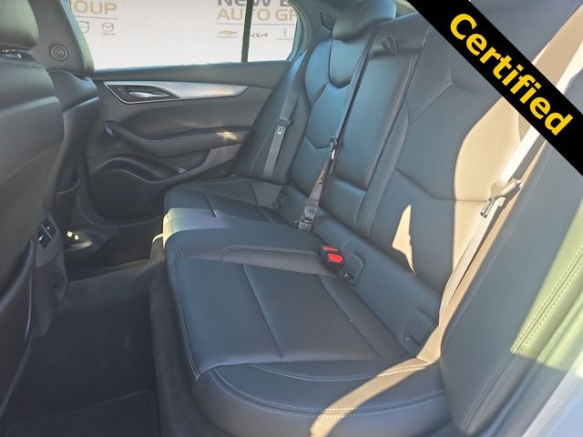 This CT5 Luxury is nicely equipped with Cold Weather Package (Heated Driver & Front Passenger Seats and Heated Steering Wheel), Preferred Equipment Group 1SB, 4-Wheel Disc Brakes, 9 Speakers, ABS brakes, Air Conditioning, Alloy wheels, AM/FM radio: SiriusXM with 360L, Apple CarPlay/Android Auto, Automatic Stop/Start w/Disable, Automatic temperature control, Brake assist, Bumpers: body-color, Compass, Delay-off headlights, Driver 2-Way Power Lumbar Seat Adjuster, Driver door bin, Driver vanity mirror, Dual front impact airbags, Dual front side impact airbags, Electronic Stability Control, Emergency communication system: OnStar and Cadillac connected services capable, Exterior Parking Camera Rear, Four wheel independent suspension, Front anti-roll bar, Front Bucket Seats, Front Center Armrest, Front dual zone A/C, Front Passenger 2-Way Power Lumbar Seat Adjuster, Front reading lights, Fully automatic headlights, Garage door transmitter, HD Radio, Heated door mirrors, Illuminated entry, Inteluxe Seating Surfaces, Knee airbag, Leather steering wheel, Low tire pressure warning, Not Equipped w/Heated Steering Wheel (DISC), Occupant sensing airbag, Outside temperature display, Overhead airbag, Overhead console, Panic alarm, Passenger door bin, Passenger vanity mirror, Power door mirrors, Power driver seat, Power passenger seat, Power steering, Power windows, Premium 9-Speaker Audio System Feature, Radio data system, Radio: Cadillac User Experience, Rain sensing wipers, Rear anti-roll bar, Rear reading lights, Rear seat center armrest, Rear window defroster, Remote keyless entry, SiriusXM w/360L, Speed control, Speed-sensing steering, Split folding rear seat, Steering wheel mounted audio controls, Tachometer, Telescoping steering wheel, Tilt steering wheel, Traction control, Trip computer, Turn signal indicator mirrors, Variably intermittent wipers, Voltmeter, and Wheels: 18 Alloy w/Bright Silver Finish.