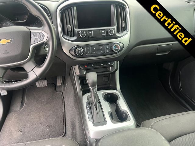 This Colorado LT is nicely equipped with Heavy-Duty Trailering Package, LT Convenience Package (Front Fog Lamps, Manual Rear-Sliding Window, Rear-Window Electric Defogger, and Remote Vehicle Starter System), Preferred Equipment Group 2LT (Enhanced Driver Instrument Information Display and Rear Vision Camera), 4-Wheel Disc Brakes, 6 Speakers, 6-Speaker Audio System Feature, ABS brakes, Air Conditioning, Alloy wheels, AM/FM radio: SiriusXM, Apple CarPlay/Android Auto, Auto-dimming Rear-View mirror, Automatic Locking Rear Differential, Bumpers: body-color, Cloth Seat Trim, Compass, Delay-off headlights, Driver 6-Way Power Seat Adjuster, Driver door bin, Driver vanity mirror, Dual front impact airbags, Dual front side impact airbags, Electronic Stability Control, Exterior Parking Camera Rear, Front anti-roll bar, Front Bucket Seats, Front Center Armrest, Front License Plate Kit, Front reading lights, Front wheel independent suspension, Fully automatic headlights, Hitch Guidance, Illuminated entry, Low tire pressure warning, Occupant sensing airbag, Outside Heated Power-Adjustable Body-Color Mirrors, Outside temperature display, Overhead airbag, Overhead console, Panic alarm, Passenger door bin, Passenger vanity mirror, Power door mirrors, Power driver seat, Power steering, Power windows, Premium audio system: Chevrolet Infotainment 3, Radio data system, Radio: Chevrolet Infotainment 3 System, Rear reading lights, Rear seat center armrest, Rear step bumper, Remote keyless entry, Security system, SiriusXM Radio, Speed control, Speed-sensing steering, Steering wheel mounted audio controls, Tachometer, Telescoping steering wheel, Tilt steering wheel, Tow/Haul Mode, Traction control, Trip computer, Variably intermittent wipers, and Wheels: 17 x 8 Blade Silver Metallic Cast Alloy.