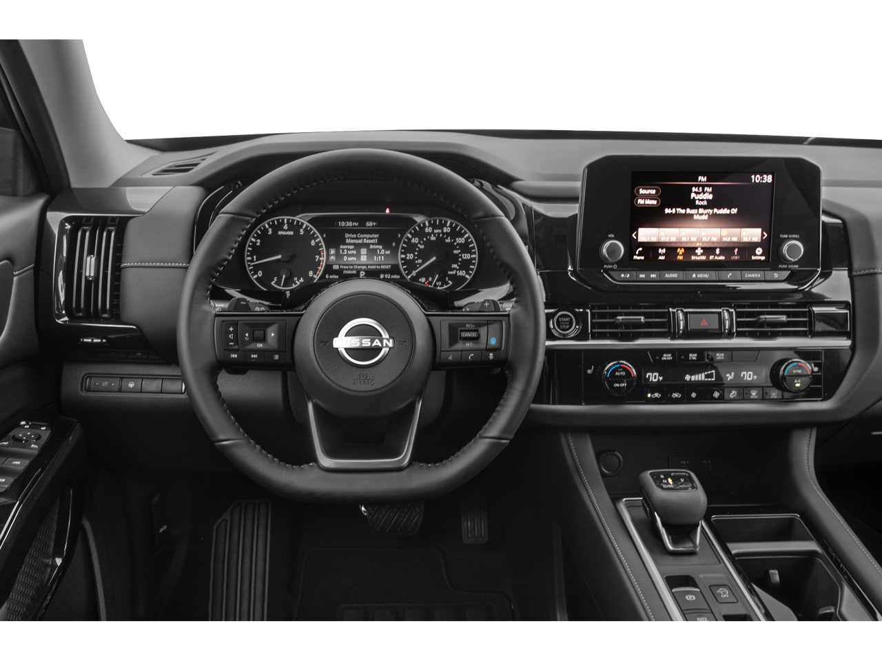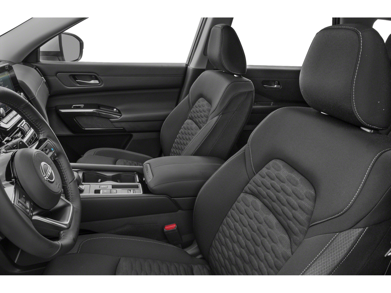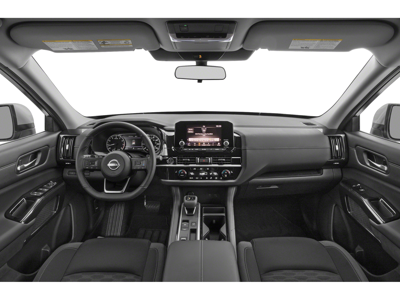This Pathfinder SV is nicely equipped with 18 Painted Alloy Wheels, 3rd row seats: bench, 4-Wheel Disc Brakes, 6 Speakers, ABS brakes, Air Conditioning, Alloy wheels, AM/FM radio: SiriusXM, Auto High-beam Headlights, Automatic temperature control, Axle Ratio: TBD, Bench Seat Carpeted Floor Mats (Set of 4), Brake assist, Bumpers: body-color, Cloth Seating Surfaces, Cross Bars, Delay-off headlights, Driver door bin, Driver vanity mirror, Dual front impact airbags, Dual front side impact airbags, Electronic Stability Control, Emergency communication system: NissanConnect Services, Four wheel independent suspension, Front anti-roll bar, Front Bucket Seats, Front Center Armrest, Front dual zone A/C, Front reading lights, Fully automatic headlights, Heated door mirrors, Heated Front Bucket Seats, Heated front seats, Illuminated entry, Knee airbag, Leather steering wheel, Low tire pressure warning, NissanConnect featuring Apple CarPlay and Android Auto, Occupant sensing airbag, Outside temperature display, Overhead airbag, Overhead console, Panic alarm, Passenger door bin, Passenger vanity mirror, Power door mirrors, Power driver seat, Power steering, Power windows, Radio data system, Radio: AM/FM Audio System w/NissanConnect, Rear air conditioning, Rear anti-roll bar, Rear Parking Sensors, Rear reading lights, Rear seat center armrest, Rear side impact airbag, Rear window defroster, Rear window wiper, Reclining 3rd row seat, Remote keyless entry, Security system, Speed control, Speed-sensing steering, Split folding rear seat, Spoiler, Steering wheel mounted audio controls, Tachometer, Telescoping steering wheel, Tilt steering wheel, Traction control, Trip computer, Turn signal indicator mirrors, and Variably intermittent wipers.