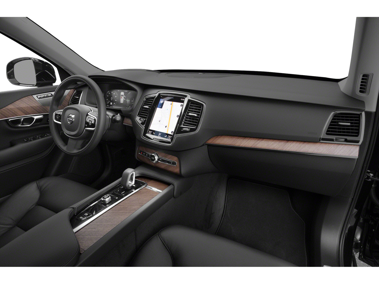 This XC90 Recharge Plug-In Hybrid T8 Inscription 7 Passenger is nicely equipped with Advanced Package (360 Surround View Camera, Air Purifier, and Graphical Head-Up Display), Climate Package (Headlight High Pressure Cleaning, Heated Rear Seats, and Heated Steering Wheel), Protection Package Premier (Bumper Cover, Cargo Tray, License Plate Frame, Rubber Floor Mats, and Wheel Locks), 14 Speakers, 3rd row seats: bucket, 4-Corner Air Suspension, 4-Wheel Disc Brakes, ABS brakes, Air Conditioning, Alloy wheels, AM/FM radio: SiriusXM, Anti-whiplash front head restraints, Apple CarPlay/Android Auto, Auto High-beam Headlights, Auto-dimming door mirrors, Auto-dimming Rear-View mirror, Automatic temperature control, Bodyside moldings, Bowers & Wilkins Premium Sound, Brake assist, Bumpers: body-color, Delay-off headlights, Driver door bin, Driver vanity mirror, Dual front impact airbags, Dual front side impact airbags, Electronic Stability Control, Emergency communication system: Volvo Cars App w/4 Year Subscription, Exterior Parking Camera Rear, Four wheel independent suspension, Front & Rear Mud Flaps, Front anti-roll bar, Front Bucket Seats, Front Center Armrest w/Storage, Front dual zone A/C, Front Heated & Ventilated Bucket Seats, Front reading lights, Fully automatic headlights, Garage door transmitter: HomeLink, Genuine wood dashboard insert, Genuine wood door panel insert, harman/kardon® Speakers, Heated door mirrors, Heated front seats, Illuminated entry, Knee airbag, Low tire pressure warning, Luggage Cover, Memory seat, Navigation system: Sensus Navigation, Occupant sensing airbag, Outside temperature display, Overhead airbag, Panic alarm, Park Assist Pilot, Passenger door bin, Passenger vanity mirror, Perforated Nappa Leather Upholstery, Power door mirrors, Power driver seat, Power moonroof, Power passenger seat, Power steering, Power windows, Premium audio system: Sensus Connect, Radio data system, Radio: harman/kardon Premium Audio System, Rain sensing wipers, Rear air conditioning, Rear anti-roll bar, Rear dual zone A/C, Rear fog lights, Rear reading lights, Rear seat center armrest, Rear window defroster, Rear window wiper, Remote keyless entry, Security system, Speed control, Speed-sensing steering, Split folding rear seat, Spoiler, Steering wheel mounted audio controls, Tachometer, Telescoping steering wheel, Tilt steering wheel, Traction control, Trip computer, Turn signal indicator mirrors, Variably intermittent wipers, Ventilated front seats, Wheels: 20 10-Spoke Black Diamond Cut Alloy, and Wheels: 21 8-Multi Spoke Black Diamond Cut Alloy.