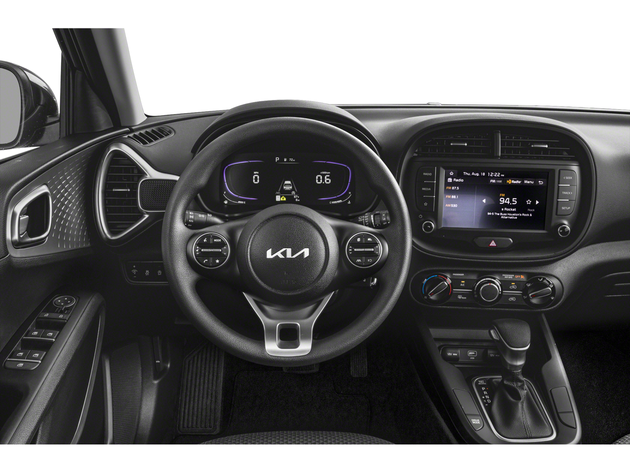 This Soul LX is nicely equipped with LX Technology Package (6.5J x 16 Alloy Wheels, Blind-Spot Collision-Avoidance Assist, Lane Change Assist, and Rear Cross-Traffic Collision Avoidance Assist), 4-Wheel Disc Brakes, 6 Speakers, 6.5J x 16 Steel Wheels, ABS brakes, Air Conditioning, AM/FM radio, Apple CarPlay & Android Auto, Auto High-beam Headlights, Brake assist, Bumpers: body-color, Carpeted Floor Mats, Compass, Delay-off headlights, Driver door bin, Driver vanity mirror, Dual front impact airbags, Dual front side impact airbags, Electronic Stability Control, Exterior Parking Camera Rear, Front anti-roll bar, Front Bucket Seats, Front Center Armrest, Front reading lights, Front wheel independent suspension, Fully automatic headlights, Illuminated entry, Low tire pressure warning, Occupant sensing airbag, Outside temperature display, Overhead airbag, Overhead console, Panic alarm, Passenger door bin, Passenger vanity mirror, Power door mirrors, Power steering, Power windows, Radio data system, Radio: AM/FM/MP3/HD Audio System, Rear window defroster, Rear window wiper, Remote keyless entry, Speed control, Speed-sensing steering, Split folding rear seat, Steering wheel mounted audio controls, Tachometer, Telescoping steering wheel, Tilt steering wheel, Traction control, Trip computer, Variably intermittent wipers, and Woven & Tricot Cloth Seat Trim.