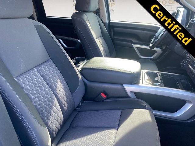 This Titan XD SV is nicely equipped with Heavy Duty Front GAWR Package (High Capacity Front Springs), SV Convenience Package (120V/12V Outlets In Back Of Center Console, 2 Illuminated USB-A Ports In Back Of Center Console, 20 Painted Alloy Wheels, Auto Dual Zone HVAC, Auto-Dimming Rear-View Mirror, Dedicated Configurable Cell Phone Holder, Dual Illuminated Vanity Mirrors, Front & Rear Parking Sensors, Gooseneck Hitch, Heated Front Captain's Chairs, Intelligent Key System, Leather-Wrapped Steering Wheel, LED Mood Light, NissanConnect Services, Overhead Console w/Sunglass Holder, Power Sliding Rear Window w/Defogger, Proximity Activation, Rear HVAC Vents, and Wi-Fi Hotspot), SV Utility Package (120V Bed Outlet, Electronic Locking Tailgate, Flat Floor Function, LED Under Rail Bed Lighting, Rain Sensing Wipers, Rear Utility Bed Step, Spray-On Bedliner, Tailgate Area Illumination, Universal Garage Door Opener, and Utili-Track Channel System w/2 Tie-Down Cleats), 17 x 7.5 Styled Steel Wheels, 4-Wheel Disc Brakes, 4.083 Axle Ratio, 6 Speakers, ABS brakes, Air Conditioning, AM/FM radio: SiriusXM, Auto High-beam Headlights, Blind Spot Warning, Brake assist, Bumpers: chrome, Carpet Floor Mats, Cloth Seat Trim, Driver door bin, Dual front impact airbags, Dual front side impact airbags, Electronic Stability Control, Front anti-roll bar, Front Center Armrest w/Storage, Front Manual Split Bench Seat (40/20/40), Front reading lights, Front wheel independent suspension, Fully automatic headlights, Heated door mirrors, Illuminated entry, Knee airbag, Loop Side Steps, Low tire pressure warning, NissanConnect featuring Apple CarPlay and Android Auto, Occupant sensing airbag, Outside temperature display, Overhead airbag, Overhead console, Panic alarm, Passenger door bin, Passenger vanity mirror, Power door mirrors, Power steering, Power windows, Radio data system, Radio: NissanConnect AM/FM, Rear anti-roll bar, Rear Bumper Step & Electronic Tailgate Lock, Rear Parking Sensors, Rear seat center armrest, Rear step bumper, Rear Underseat Storage, Rear window defroster, Remote keyless entry, Security system, Speed control, Speed-sensing steering, Speed-Sensitive Wipers, Splash Guards, Split folding rear seat, Steering wheel mounted audio controls, Tachometer, Telescoping steering wheel, Tilt steering wheel, Traction control, Turn signal indicator mirrors, Variably intermittent wipers, and Voltmeter.